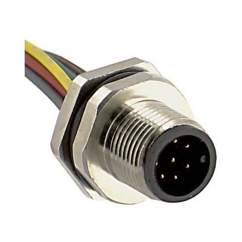 TURCK FS 8-0.5 Connector, Straight M12 Male 8 pos to wire leads, 8 wire 0.5M, PG9 Panel Mt, PVC 60VAC/75VDC 2A