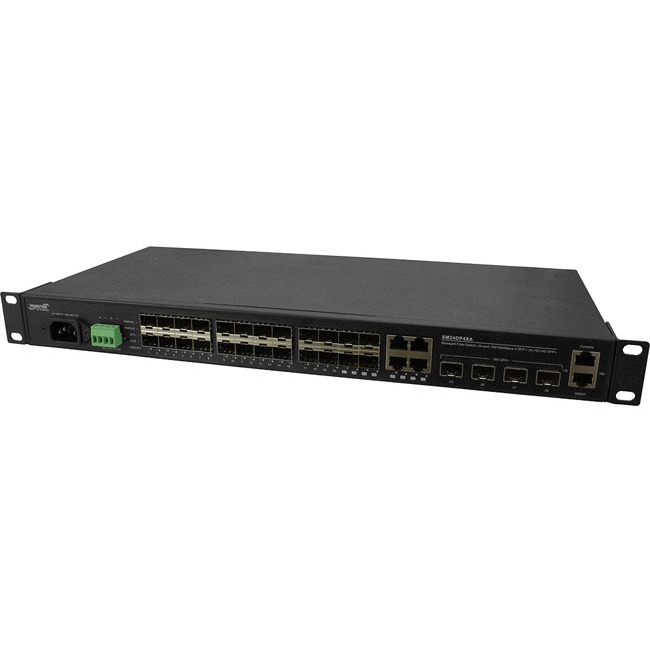 This switch is a next generation Layer 2 managed switch with 128Gbps switching capacity. It provides up to (24) dual speed fiber slots and (4) 10Gig aggregation ports, it's an ideal switch for fiber aggregation applications.