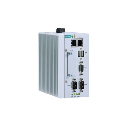 Moxa MC-1112-E4-T (Custom-QTC) Fanless PC, 1.91 GHz quad core Atom E3845, 8 GB RAM, 1 VGA, 2 LAN, 2 serial, C1D2, -40 to 70°C