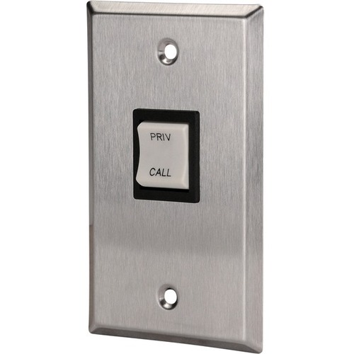 The CIB4 is a single-gang call-in switch with a momentary (normally open) rocker actuator and privacy function in a brushed stainless steel finish. "CALL" and "PRIV" are hot stamped on the switch. 6-32 hardware included.