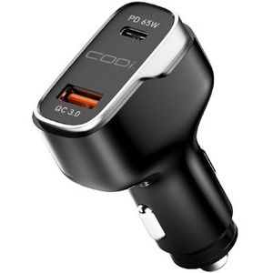 Have the assurance of a full battery bar with the 65W Dual Port Car Charger with USB-C and USB-A Quick Charge 3.0 outputs. Plug the charger into your car's DC 12-24V outlet to rapidly charge two USB-powered devices such as smartphones, tablets, iPhones, or iPads while on the go.