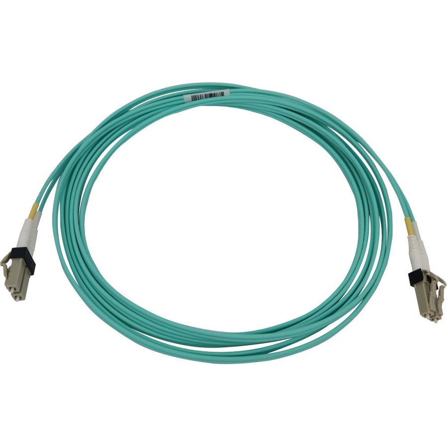The OM3-rated cable has an aqua jacket to identify it as multimode in a crowded patch panel or switch and prevent it from becoming accidentally disconnected. The round low-smoke zero-halogen (LSZH) jacket limits the amount of toxic smoke emitted in case of combustion, making it suitable for poorly ventilated areas.