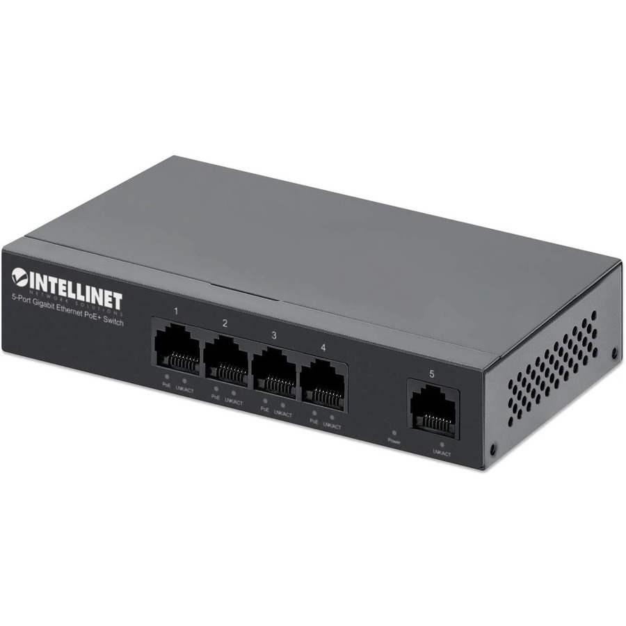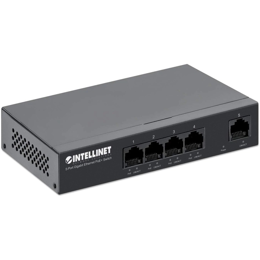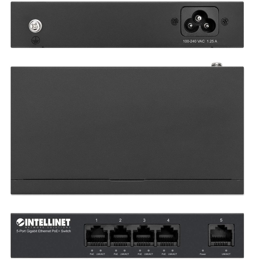 The Intellinet Network Solutions 5-Port Gigabit Ethernet PoE+ Switch passes both data and electrical power to a number of PoE-compatible devices via standard Cat5e or Cat6 network cables. Equipped with five Gigabit Ethernet ports - four of which are high-power PoE+ PSE ports - this switch can power wireless LAN access points and bridges, VoIP phones, IP video cameras and more while delivering network speeds up to 1000 Mbps.