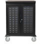 FeaturesSecure Storage Cart Provides Ample Space for Laptops, Tablets and CablesConstructed from heavy-duty steel with a black powder-coated finish, this Safe-IT™ locking cart provides safe, secure storage for your laptops, tablets and other valuable electronics. The front and back doors lock with the included keys to help prevent theft, damage and tampering. For extra security, the doors can be fastened with user-supplied padlocks. Flow-through vents on the doors and side panels help protect the devices against overheating, and the specially coated shelves help prevent device scratches and scuffs.
