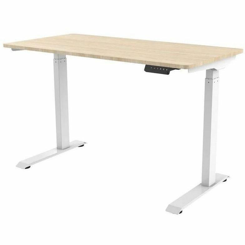 The durable, powder-coated steel frame is topped with a one-piece, solid-core engineered wood desktop.