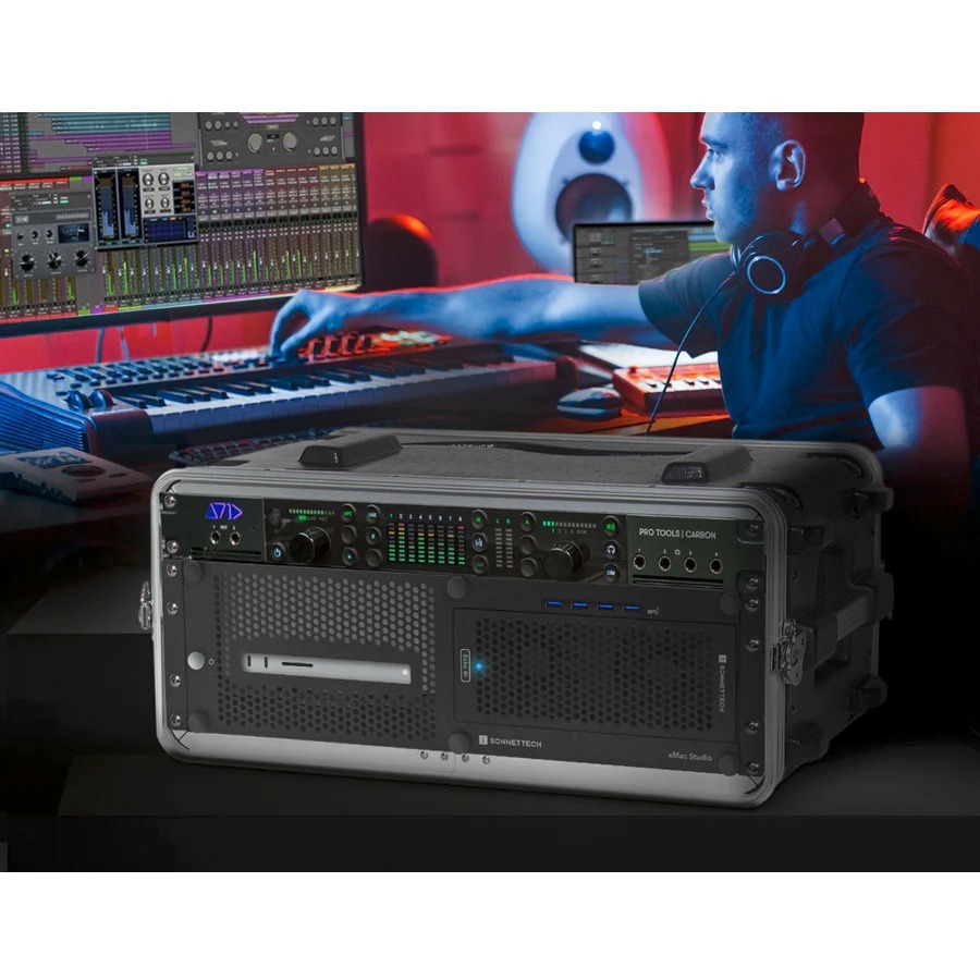 For many creative professionals, PCIe card expansion is not an option - its a necessity for connecting specialty cards to handle audio and video post-production projects. xMac Studio is a rugged steel 3U rackmount enclosure for securing a Mac Studio with optional PCIe card expansion module in a rack, placing the Mac Studio behind a quick and easy to remove front panel. Sonnet designed the xMac Studio/Echo III for pro workflow flexibility; a rugged steel enclosure protects the Mac Studio while a three slot PCIe expansion module provides expansion for up to three PCI cards, including support for up to three Avid Pro Tools | HDX cards.