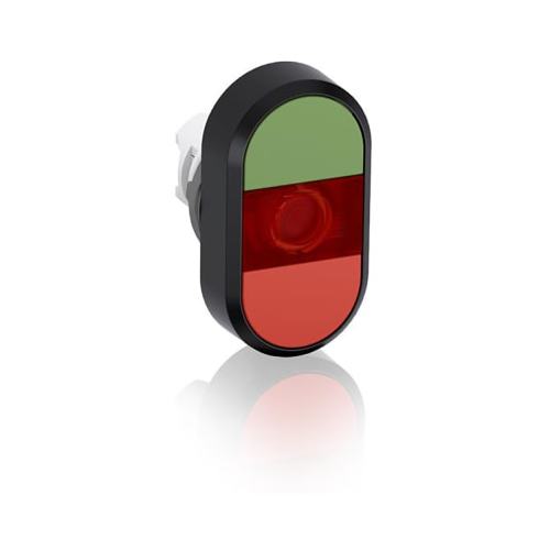 ABB MPD1-11R Double Pushbutton, Maintain, Flush/Flush, G/R Actuator, Red Indicator, Illum, Black Plastic, No contact block