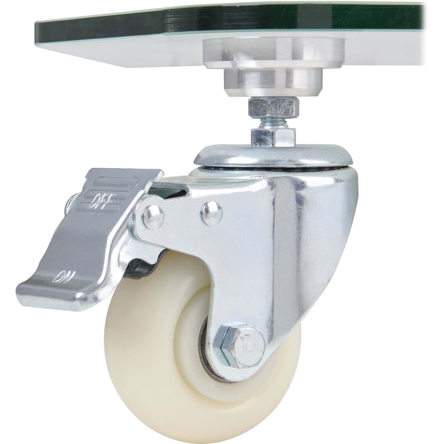 The durable frosted glass shelf and base hold audio/video and other components, such as laptops, projectors, webcams and Blu-ray players. Cables can be routed along the column to keep them hidden and avoid excessive clutter.