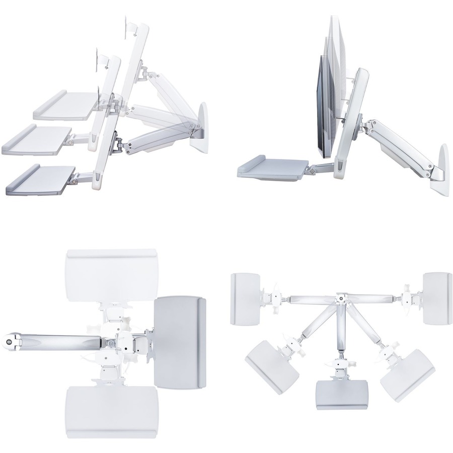 This Sit-Stand Wall Mount Workstation allows you to create an ergonomic standing desk setup. This is the ideal solution for installations with limited space for a traditional desk, such as offices, labs, clinics, or warehouses. The workstation features a foldable keyboard with an ambidextrous slide-out mousepad tray. The spring-assisted arm allows for height adjustment and lets you alternate between sitting and standing without interrupting your workflow. Adjust your workstation up, down, left or right, to suit the user's ergonomic requirements.