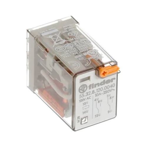 Finder 55.34.8.120.0030 Ind. Plug-In Relay, 4PDT 7A, 120V AC coil, AgNi contact, LED