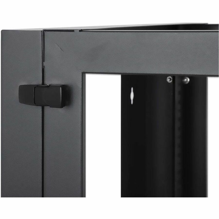 The open frame design ensures maximum airflow to your equipment for smoother operation and a longer lifespan. It also allows your cabling to enter through all sides. Hinges on the rear frame let the entire enclosure swing open for easy component exchange and maintenance. Three latches keep the frame closed. This construction makes it a smart choice as a test center rack for server and networking equipment.