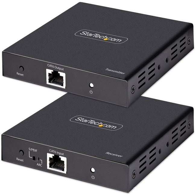 This HDMI® Extender transmits a 4K 60Hz HDMI audio video signal up to 230ft (70m) over Category 5e/6 Ethernet Cabling. The converter kit includes the transmitter and receiver units for a complete point-to-point solution.