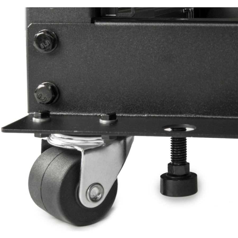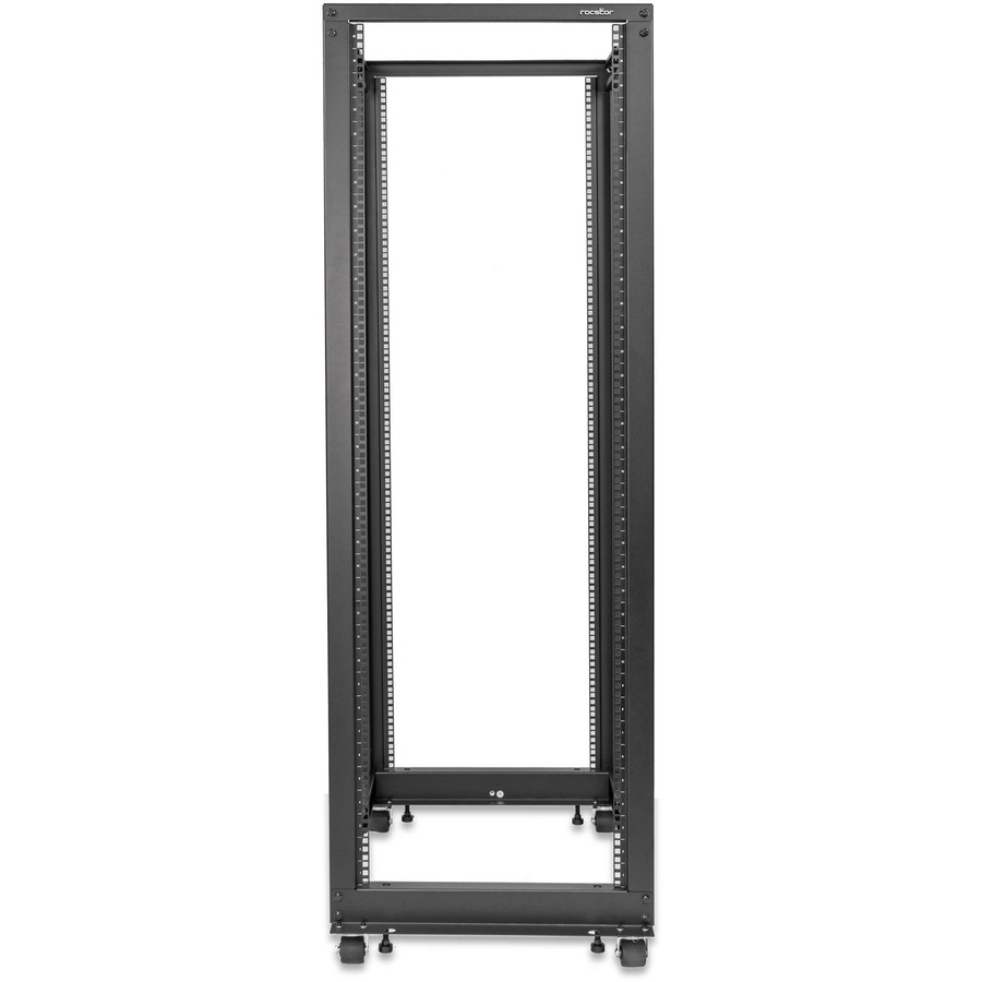 This 36U frame has 4-vertical rails with adjustable depths to hold up to 19-inch equipment, providing better protection and cable management. This premium standalone rack is made of heavy-duty CRS and finished with black-powder coating for durability. It has a tested weight capacity of up to 1200 lbs. (544 kg). Rocstor provides all necessary hardware for assembly, including cage nuts and screws for the punched square holes on the front and back rails. The rack also has casters for mobility and easy movement across different surfaces. Alternatively, it can be attached to the floor with a pre-drilled base for stability and security. It also has leveling feet for adjusting on uneven floors for a tightened grip.