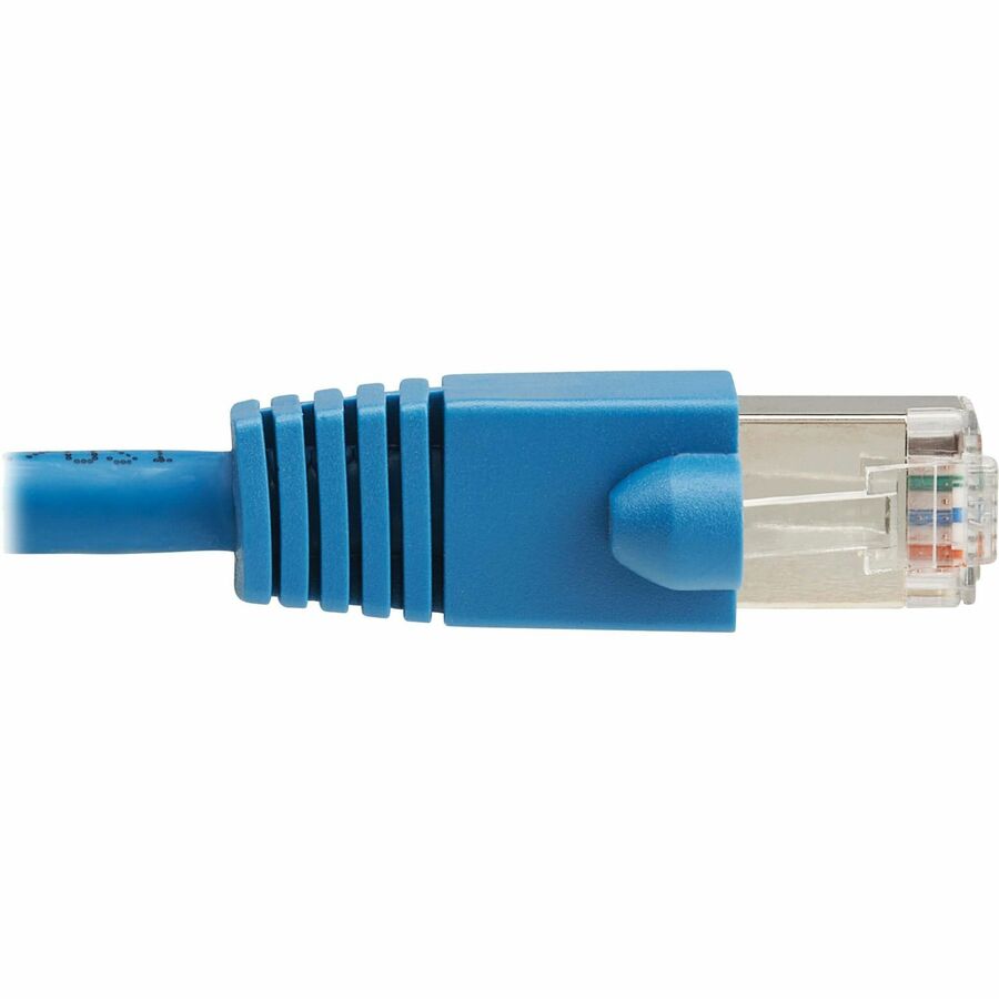 This Cat8 Ethernet cable features a blue LSZH (low-smoke zero-halogen, ideal in poorly ventilated environments) jacket, which is easy to identify quickly in a crowded patch panel or switch and helps prevent the cable from becoming accidentally disconnected.
