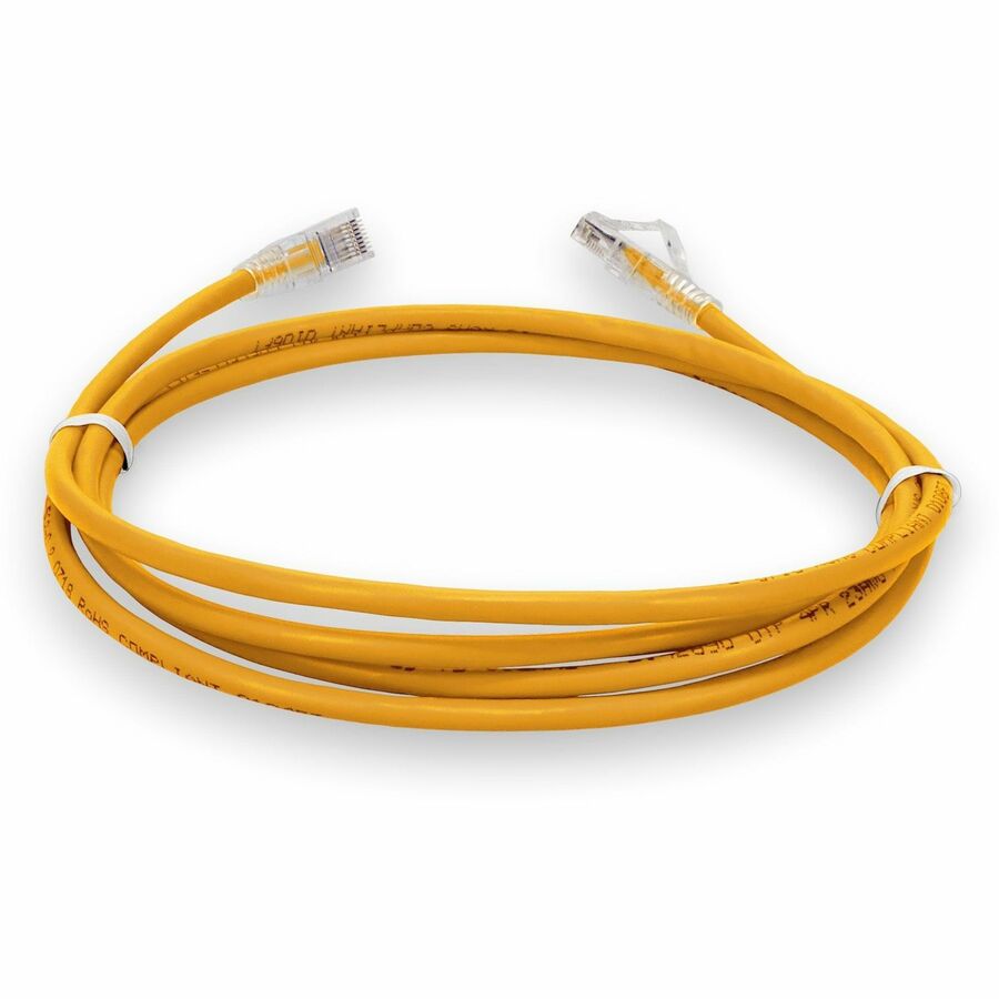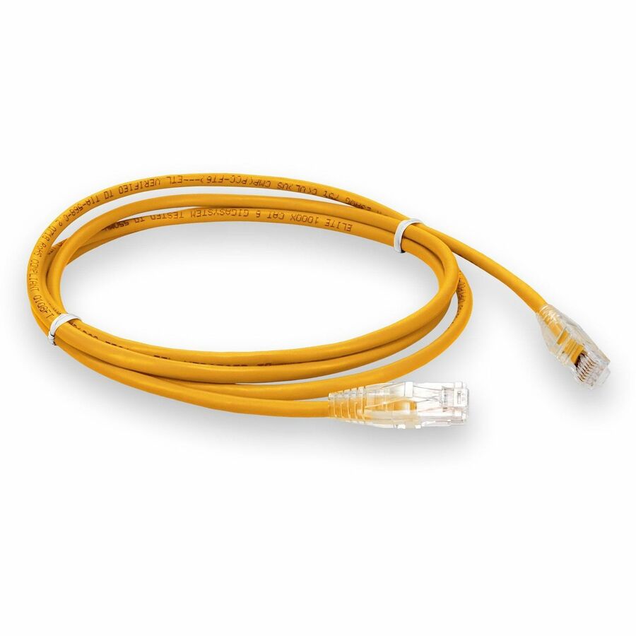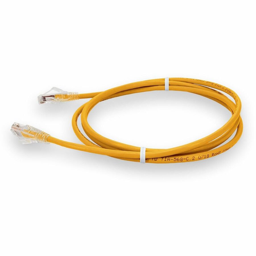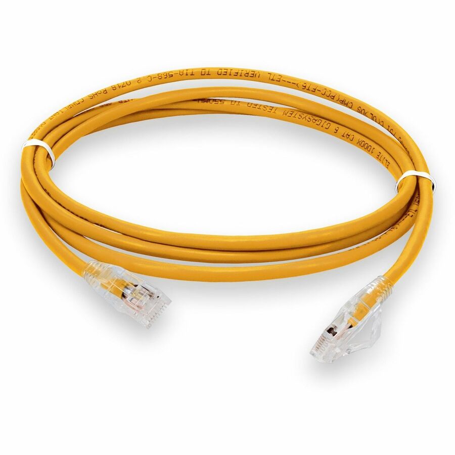 This is a 7ft RJ-45 (male) to RJ-45 (male) yellow straight UTP plenum-rated copper patch cable. The Cat6 cable is a standardized twisted pair cable for Ethernet or other physical network layers. Cat6 standards specify performance of up to 250MHz. This plenum-rated cable is the only cable allowed in spaces defined as air plenum-rated, such as raised flooring systems and air handling ducts. plenum-rated cables must self-extinguish and prevent re-ignition. Unshielded twisted pair patch cables are perfect for data centers, LANs and other short range network connections. Our patch cables are 100% compliant for all of your networking needs. Our products are guaranteed by federal law to not affect or void OEM warranties.