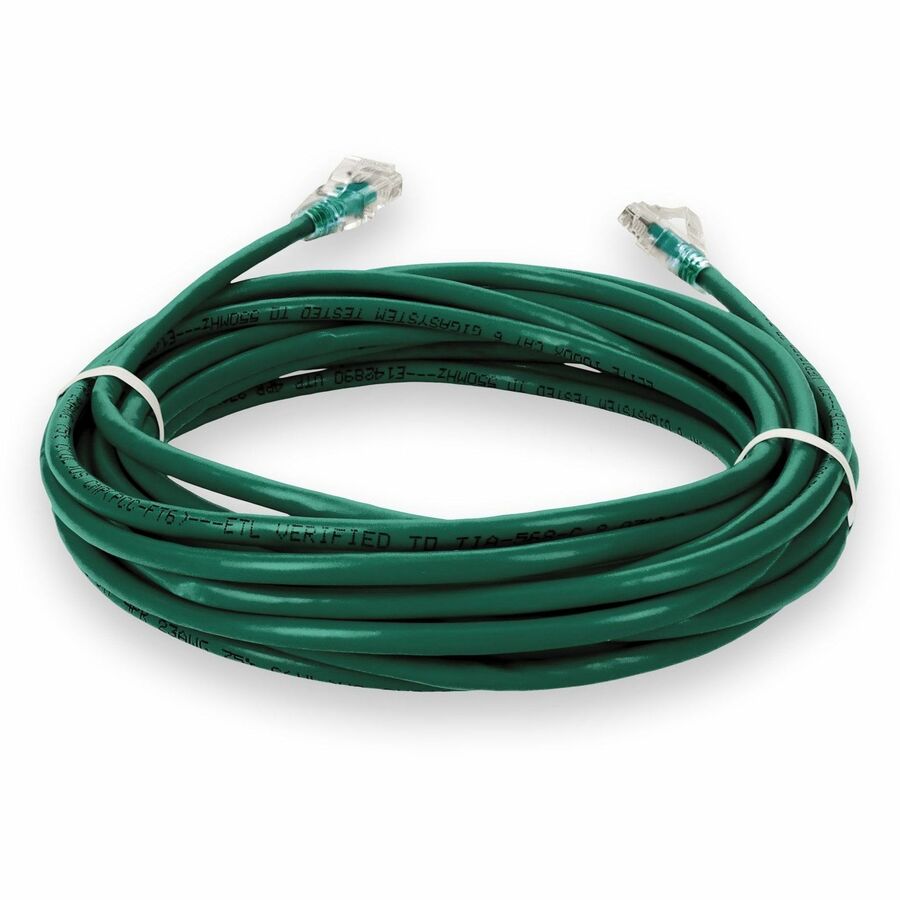 This is a 30ft RJ-45 (male) to RJ-45 (male) green straight UTP plenum-rated copper patch cable. The Cat6 cable is a standardized twisted pair cable for Ethernet or other physical network layers. Cat6 standards specify performance of up to 250MHz. This plenum-rated cable is the only cable allowed in spaces defined as air plenum-rateds, such as raised flooring systems and air handling ducts. plenum-rated cables must self-extinguish and prevent re-ignition. Unshielded twisted pair patch cables are perfect for data centers, LANs and other short range network connections. Our patch cables are 100% compliant for all of your networking needs. Our products are guaranteed by federal law to not affect or void OEM warranties.