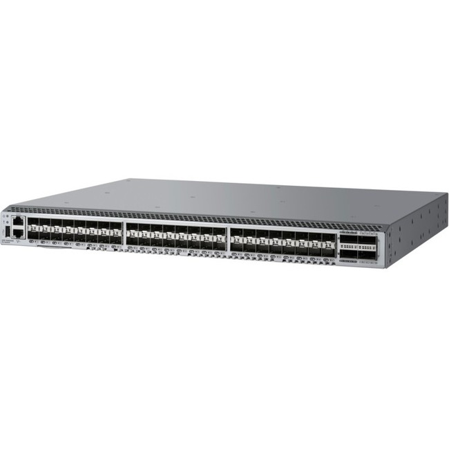 Each of the 48 SFP+ ports supports 4, 8, 10, 16, and 32 Gb FC speeds, while each of the 4 QSFP ports is capable of supporting 128 Gb.