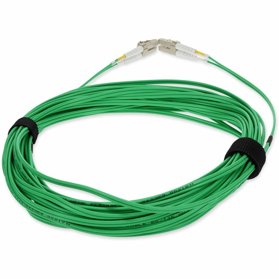This is a 3.0m (9.8ft) LC (male) to LC (male) green OM4 Duplex plenum-rated patch straight cable that is used for high speed data transfer. An OM4 cable has a core size of 50m microns that supports 10 Gigabit Ethernet at lengths measuring up to 550 meters , and 100 Gigabit Ethernet measuring up to 150 meters and is reverse compatible with OM3. Plenum-rated cables must self-extinguish and prevent re-ignition. Duplex cabling provides two-strands of fiber and is most commonly used in applications that utilize one lane to transmit and one lane to receive. Our patch cables are 100% compliant for all of your networking needs and are guaranteed by federal law to not affect or void OEM warranties.