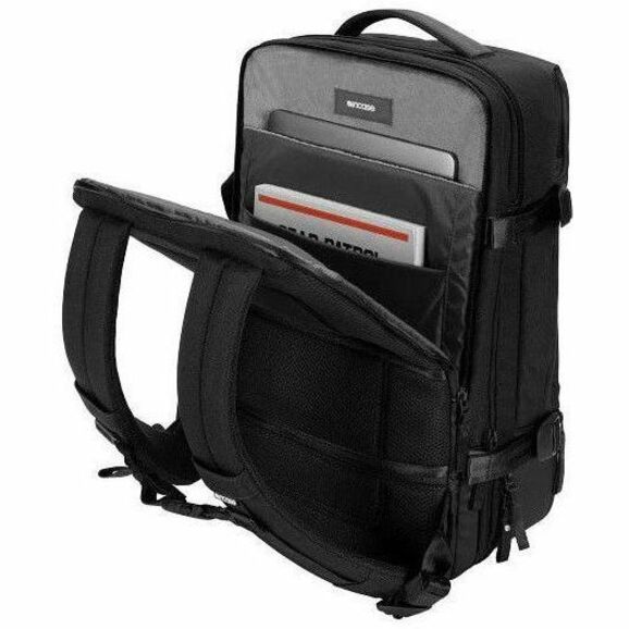 Sleek enough for business class travel, comfortable as a daily office go-to, and ready for a weekend trip, the Travel Pack is the ultimate tech and lifestyle crossover bag. A butterfly opening design allows for multiple compartments, while zippered mesh dividers and a dedicated shoe compartment ensure items stay neatly in place on-the-go. Additional laptop, tech, and water bottle pockets provide ultimate device protection and thoughtful organization.