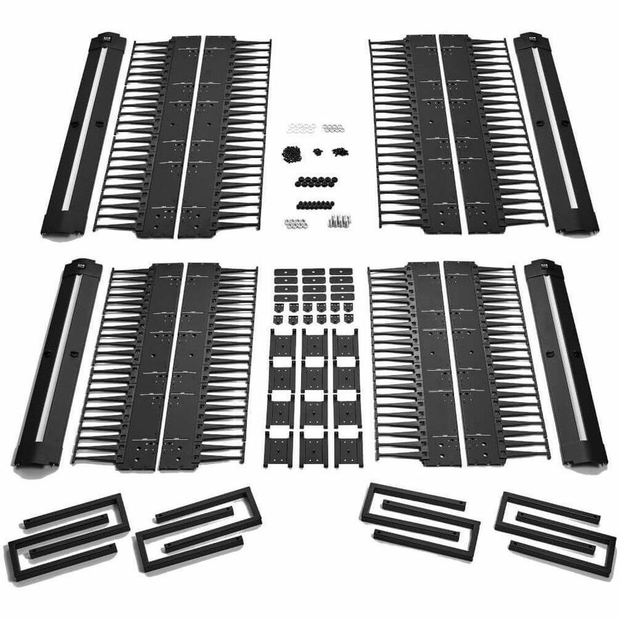The double-sided SRCABLEVRT6HD2 splits into four 3.5-foot (1.1-meter) sections to give you more installation options while maintaining the same mounting points as the single-sided version (SRCABLEVRT6HD, sold separately). All assembly hardware is included. No hardware is required for toolless 0U vertical installation in an EIA-standard 19-inch 2-post or 4-post open frame rack.