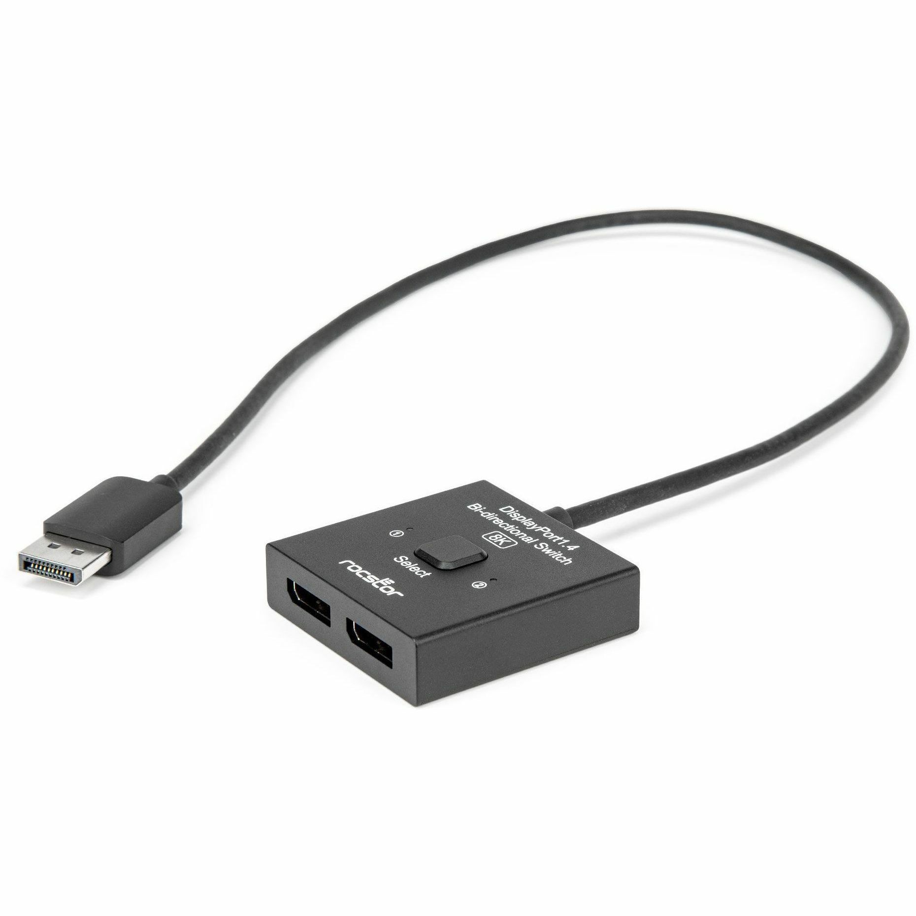 Rocstor's DisplayPort 1.4 2-in-1 Bi-directional Switcher is designed for seamless 8K resolution switching. This versatile device allows you to switch between two sources to one display or one source to two displays effortlessly by pressing the switch button. Equipped with a 50cm fixed DP cable (pigtail), it not only reduces costs but also simplifies the setup process for users. The switcher supports high-definition video across various resolutions, including up to 8K, and handles digital audio efficiently. Power can be supplied through the DP male connector, with an optional Type-C female port available as a backup power supply to deliver 5V power when needed.