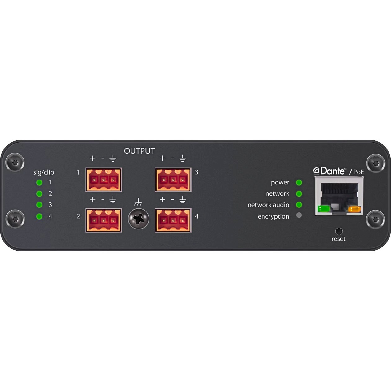 Converts Dante™ digital audio signal to four discrete line / mic analog signals for easy audio routing and convenient browser-based remote control.