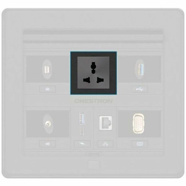 Crestron® FT2A-PWR-UN Series AC Power Outlet Modules are designed for use with a Crestron FT2 Series FlipTop™ cable management system to provide one or more convenience receptacles to power laptops and other AC powered devices at the table.