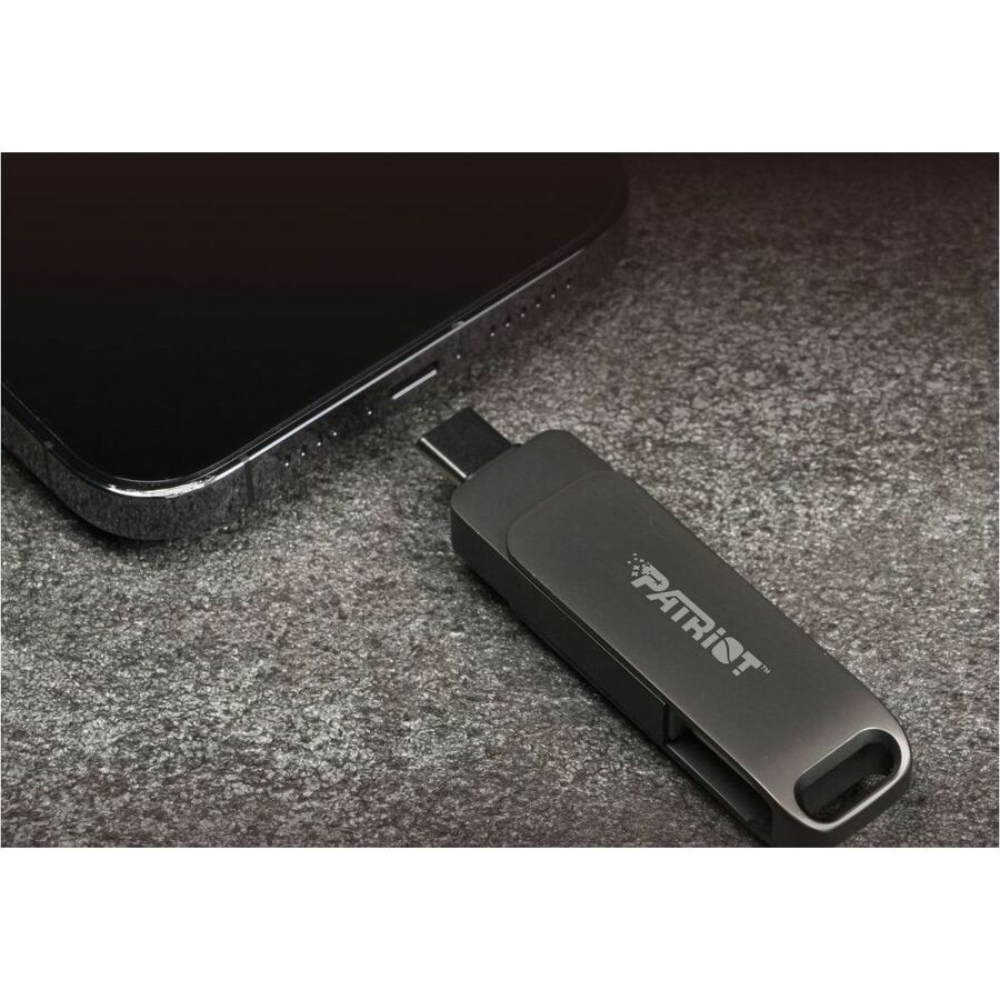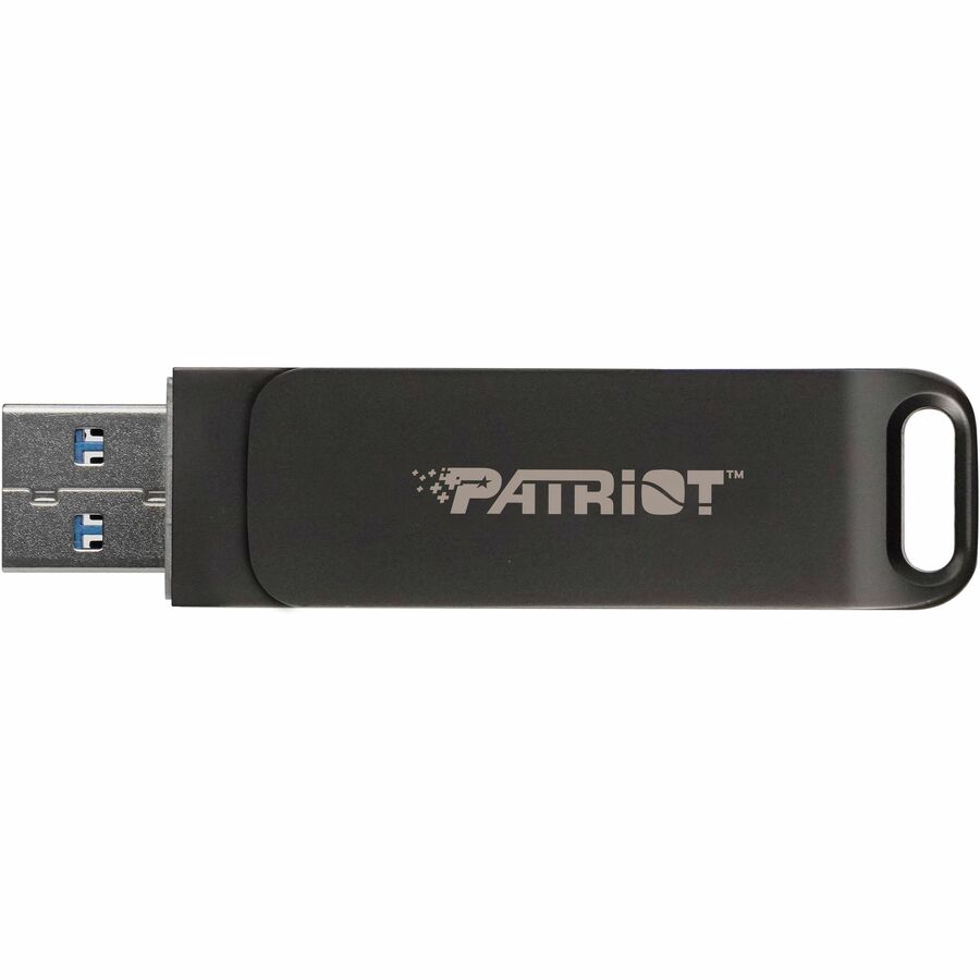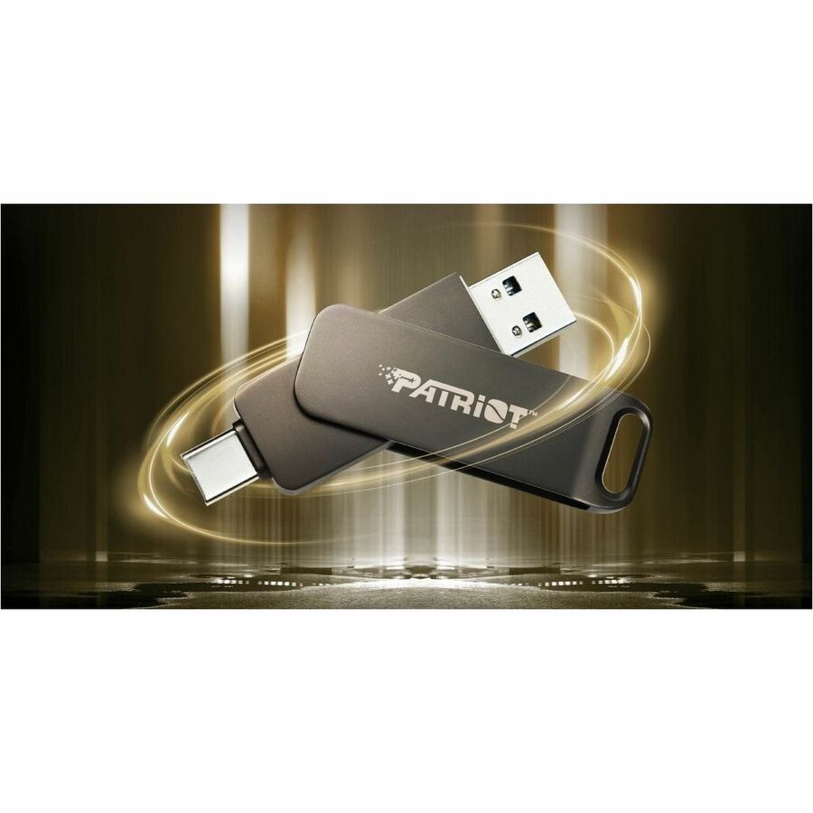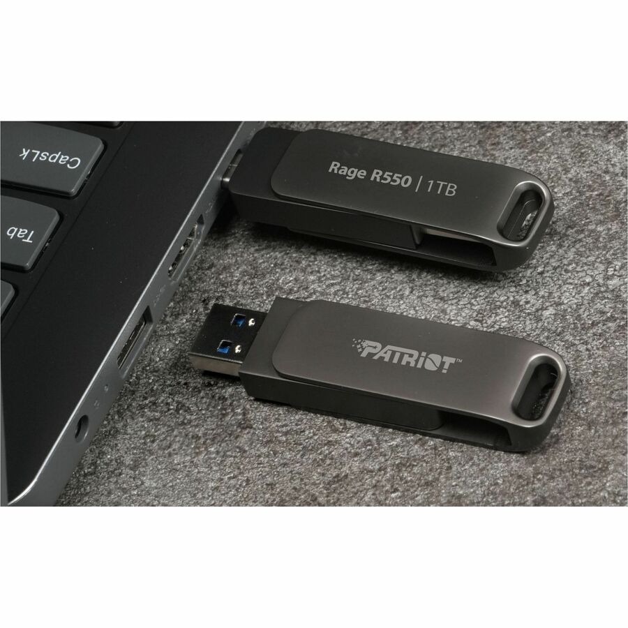 Introducing Patriot's Rage R550 USB 3.2 Flash Drive! It's a high-speed USB with a USB Type-C and USB A dual interface. The USB Type-C allows it to be a versatile connector that can be used for several purposes, including transmitting data, video, and audio at higher speeds than a regular USB. With read speeds up to 100MB/s, downloads and file transfers are quicker and more efficient than ever. To keep files safe, the USB is designed to protect connectors, and comes equipped with a keyhole to hang the flash drive on a key ring, keeping it safe and portable.