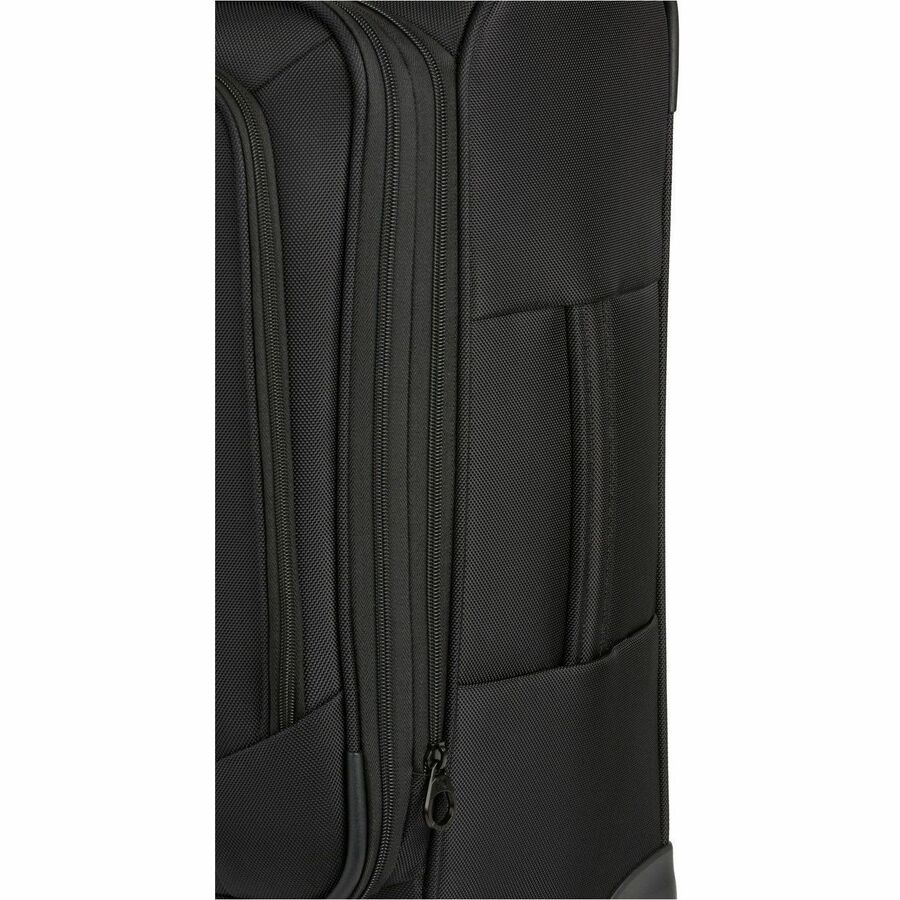 The exterior features a spacious zippered front pocket perfectly sized for files, catalogs, or even a sweater. Inside the suitcase, adjustable compression straps keep contents secure, while a zippered mesh flat pocket is ideal for undergarments, accessories, and other essentials.