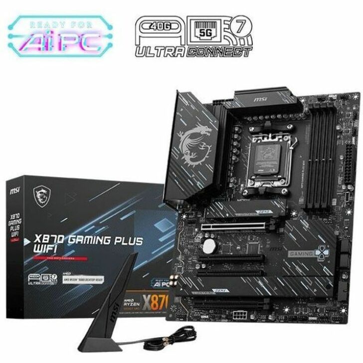 X870 GAMING PLUS WIFI is designed with durable components to provide great gaming experience. Designed with Wi-Fi 7 and 5G LAN, high-speed USB4, PCIe 5.0 solutions, Supplemental PCIe Power and exclusive EZ DIY features, it's ready for 24/7 non-stop gaming of AMD Ryzen™ 9000 series processors.