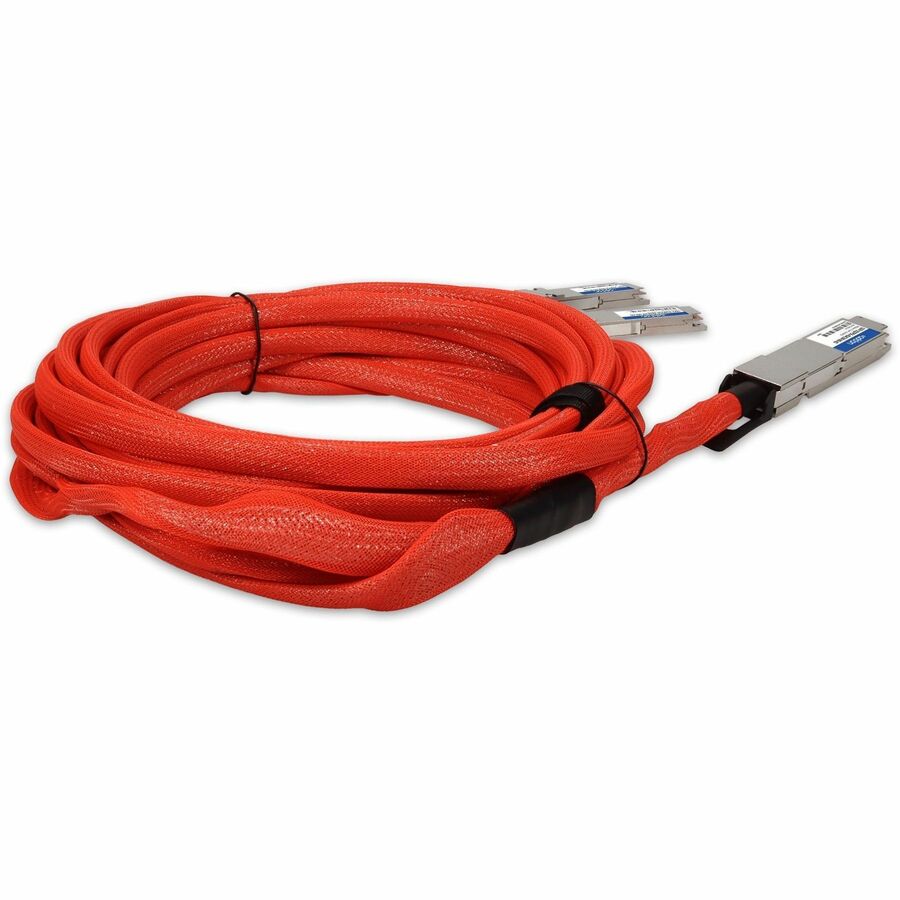 This is a Mellanox compatible 400GBase-CU OSFP to 2xQSFP56 direct attach cable that operates over active copper with a maximum reach of 3m. It has been programmed, uniquely serialized, and data-traffic and application tested to ensure it is 100% compliant and functional. This direct attach cable is TAA (Trade Agreements Act) compliant, and is built to comply with MSA (Multi-Source Agreement) standards. We stand behind the quality of our products and proudly offer a limited lifetime warranty.