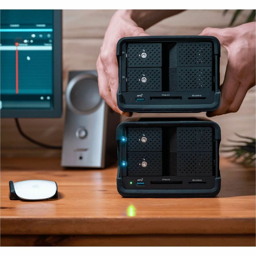 The Glyph Blackbox PRO RAID is a high-performance, ultra-reliable hardware RAID powered by USB-C (10Gb). Available with an optional card reader / hub combo to streamline media ingest or charge / connect peripherals. Whether you're in studio or at home, Glyph Blackbox PRO RAID is the ultimate workflow solution.