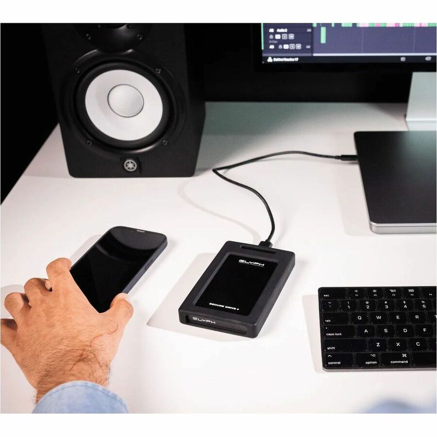 Feel at ease when your data is protected by the Glyph SecureDrive+. A hardware encrypted, rugged, and portable drive with wireless unlocking via secure Bluetooth.