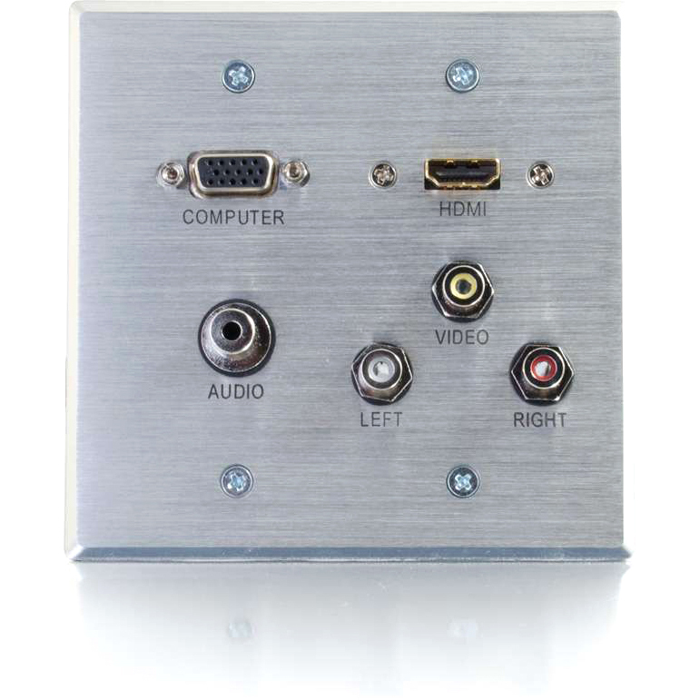 HDMI,VGA,3.5mm,Composite Video and Stereo Audio Pass-through Wall Plate Aluminum