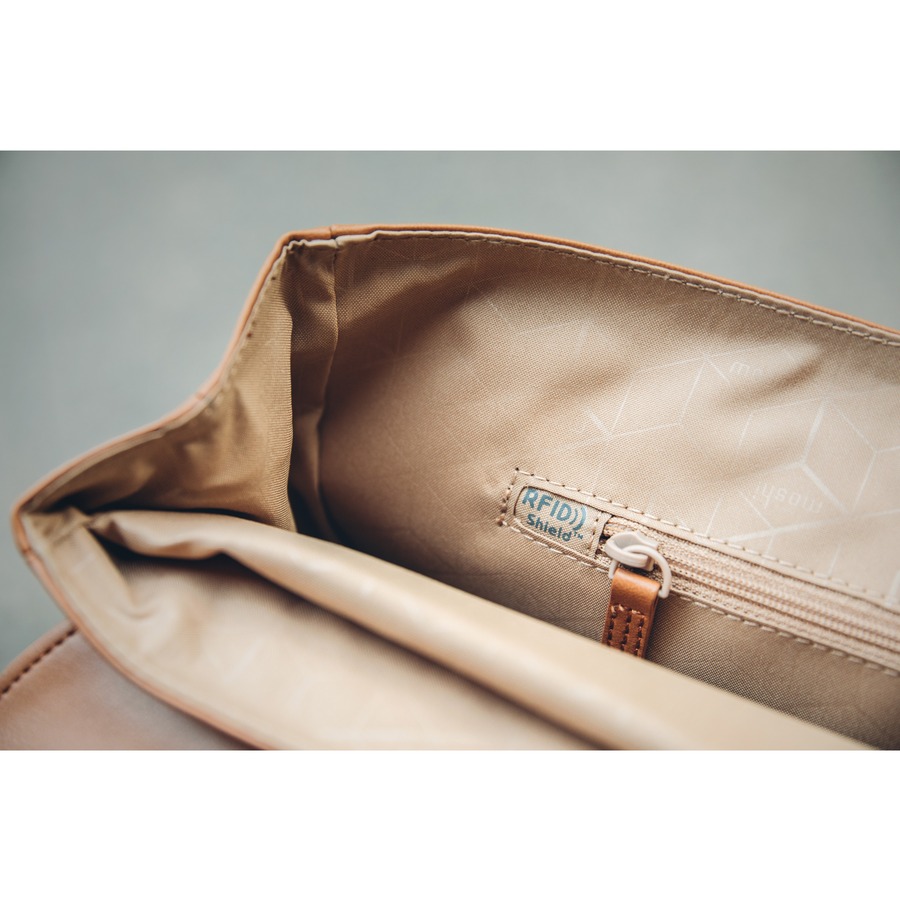 Keep accessories such as pens, chargers, smartphones and cables neatly organized in the bag's numerous internal compartments. The compartments include an RFID Shield pocket that protects your cards against digital snooping.