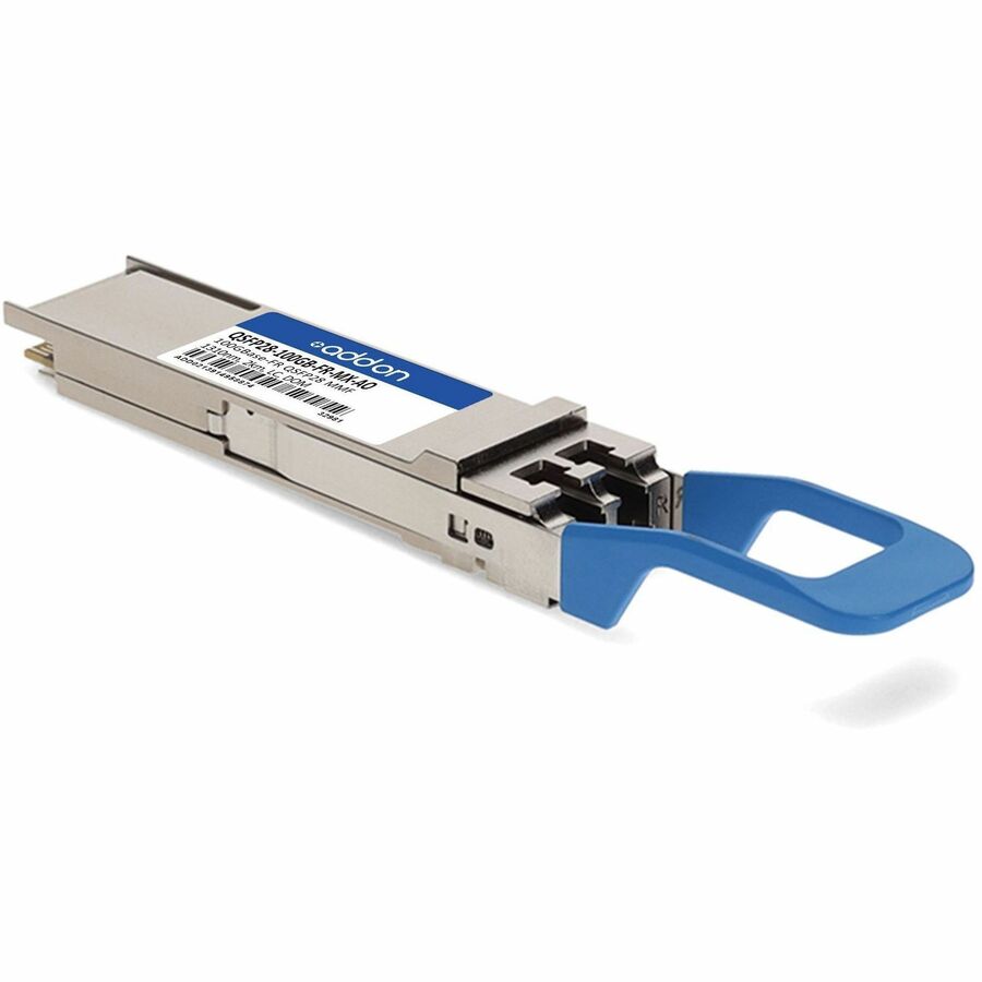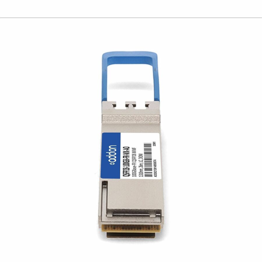 This Mellanox compatible QSFP28 transceiver provides 100GBase-FR throughput up to 2km over single-mode fiber (SMF) using a wavelength of 1310nm via an LC connector. It can operate at temperatures between 0 and 70C. Our transceiver is built to meet or exceed OEM specifications and is guaranteed to be 100% compatible with Mellanox. It has been programmed, uniquely serialized, and tested for data-traffic and application to ensure that it will initialize and perform identically. All of our transceivers comply with Multi-Source Agreement (MSA) standards to provide seamless network integration. Additional product features include Digital Optical Monitoring (DOM) support which allows access to real-time operating parameters. This transceiver is Trade Agreements Act (TAA) compliant. We stand behind the quality of our products and proudly offer a limited lifetime warranty.