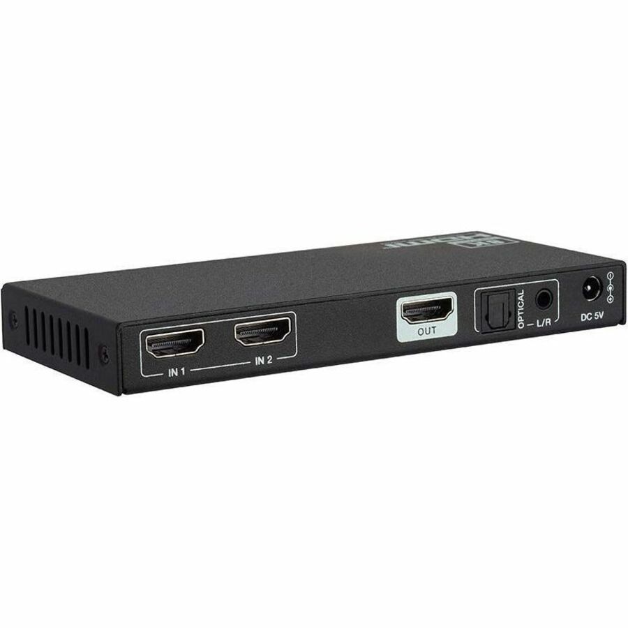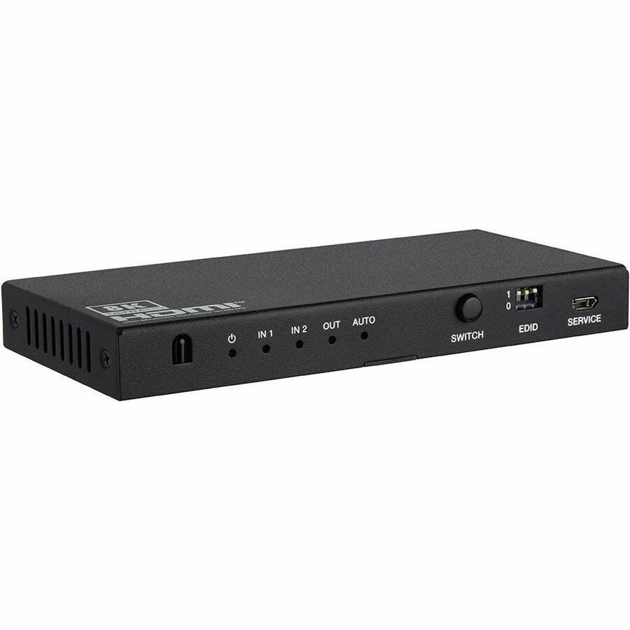 The KanexPro SW-2X18K 8K 2x1 HDMI 2.1 switcher allows for seamless switching between two HDMI sources and display on a single HDMI display. It supports resolutions up to 8K at 60Hz and 4:4:4 with 48Gbps video bandwidth, making it perfect for use in various commercial applications. Users can toggle between sources with the switch button on the top panel of the switcher. It is also compatible with gaming consoles like Xbox and PS5, achieving a resolution of 4K at 120Hz on TVs and computer monitors.