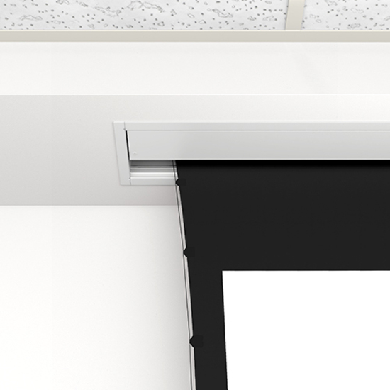 The Tensioned Advantage® Electrol® screen features simple in ceiling installation that can be done in two stages. The screen case can be installed during the rough-in construction stage and the fabric assembly can be completed during the finishing stage.