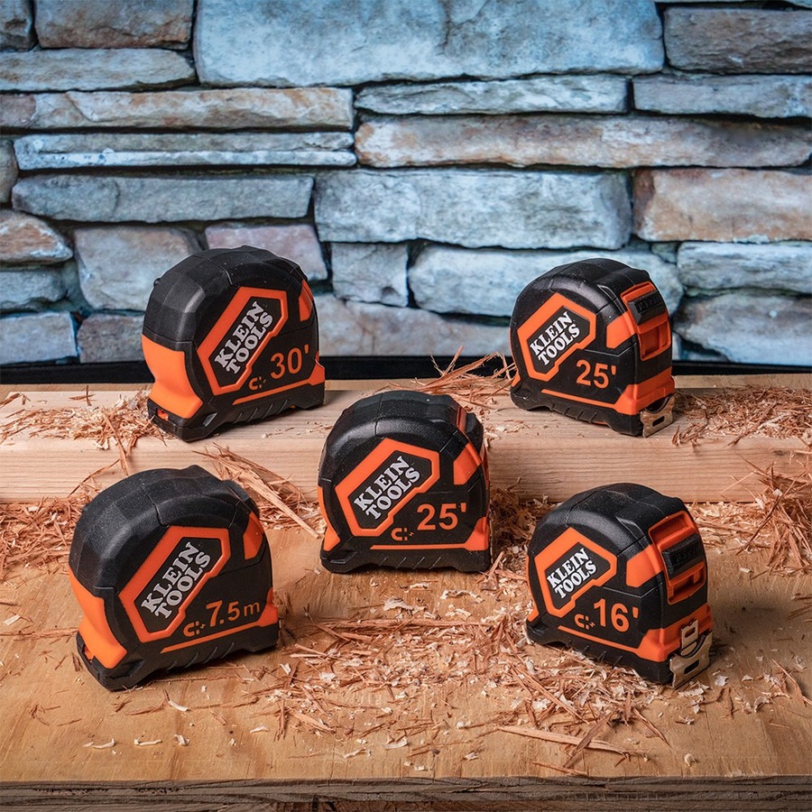 Klein Tools Tape Measures deliver performance and durability expected by professional tradespeople. Safeguarded by a thick and durable protective nylon-coating, the Tough Blade stands out to 13-Foot. Able to endure the toughest of jobsite conditions, this tool also features a strong magnetic double hook, easy-to-read bold lines, and a retraction brake.