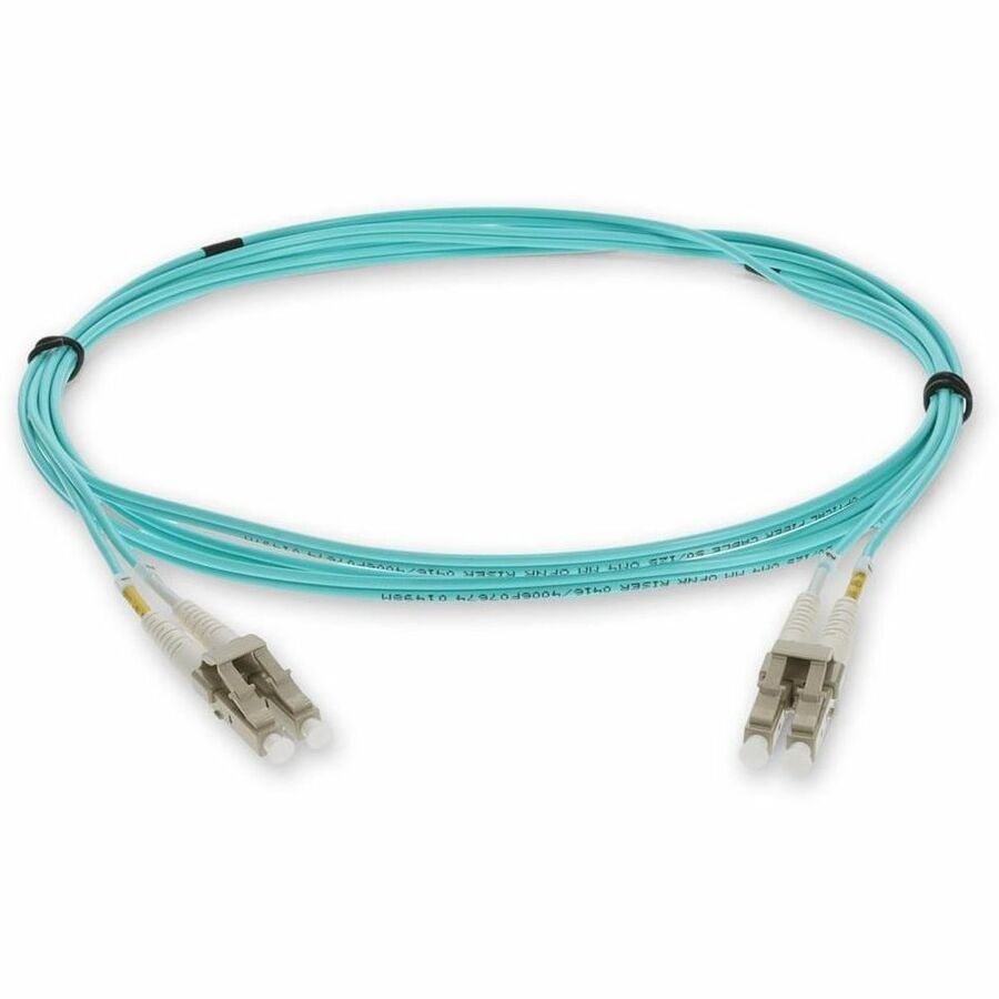 This is a 3m LC (male) to LC (male) aqua duplex riser-rated fiber patch cable. An OM3 cable has a core size of 50 microns that supports 10 Gigabit Ethernet at lengths measuring up to 300 meters, and 40 Gigabit or 100 Gigabit Ethernet measuring up to 100 meters. This optical fiber, nonconductive, riser (OFNR) cable is best suited for use in interior fiber-optic applications. A duplex cable is a two-strand fiber optic patch cable that works best with transceivers that both transmit and receive. Our patch cables are 100% compliant for all of your networking needs. Our products are guaranteed by federal law to not affect or void OEM warranties.