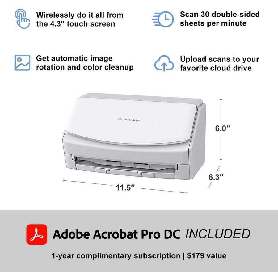The ScanSnap iX1500 Deluxe edition includes a 1-Year Acrobat Pro DC license. The world's leading PDF software, Adobe Acrobat Pro DC enables users to convert, edit, review and track documents in PDF formats. These documents can then be exported to Excel, Word or PowerPoint, and they can be edited, tracked and easily searched.ScanSnap iX1500's ScanSnap Home combines all your favorite functions into one interface. Easily manage, edit, and utilize scanned data from documents, receipts, business cards, photos and more all in one application. Documents are automatically recognized and grouped according to document type (receipts, photographs, business cards etc.).
