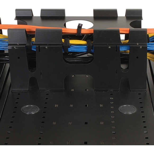 Tripp Lite's SmartRack SRCABLETRAY safely routes cables across the top of an enclosure. When cabinets are lined in a row, these trays create a dedicated path for cables helping to eliminate cable stress. The SRCABLETRAY organizes cables outside of the SmartRack enclosure. It offers toolless mounting to the top of the rack panel and a grounding stud is provided to allow tie-in to the enclosure and the facility ground.